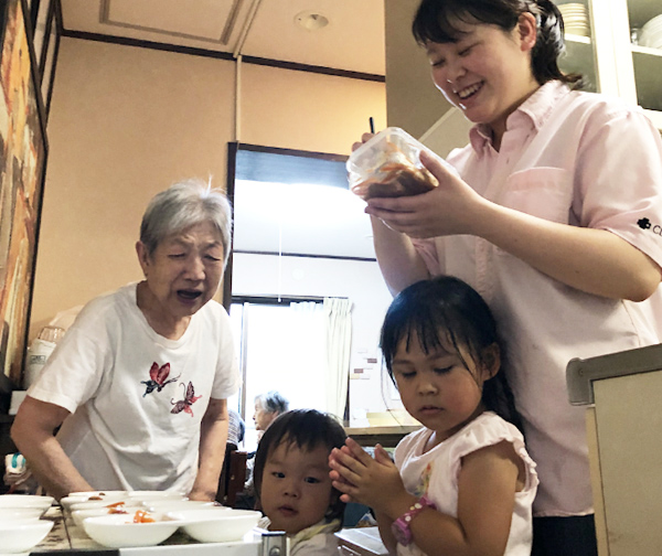 お年寄りと子供が交流を持つと脳が活性化して元気になると大学の研究結果で発表されています。スタッフの子供が施設にいることで、お年寄りの笑顔が増えます。子供にとっても色々な人にだっこされる事で、自尊心や社会性が身につきます。働きたくても子供が小さくて働けない女性の活躍の場を提供して、お年寄り、子供、ママのWIN-WIN-WINの関係が築けます。