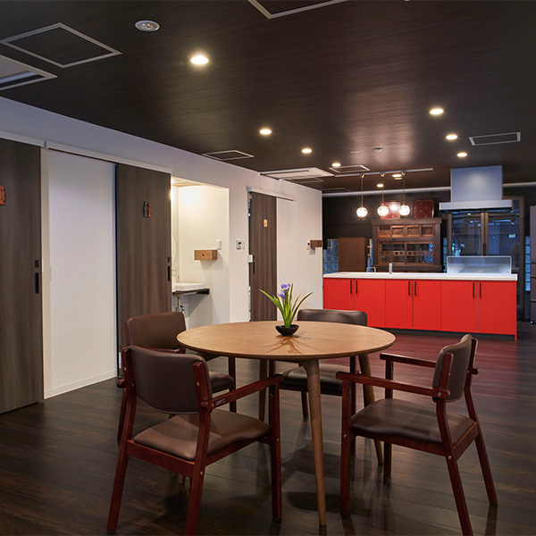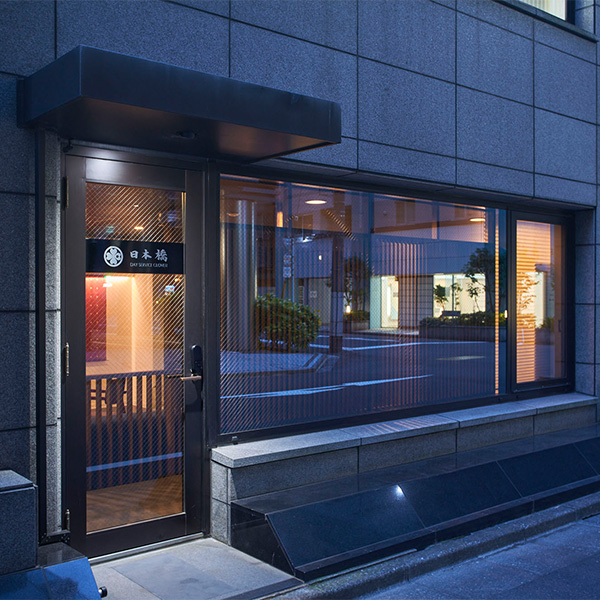 「小伝馬駅」から徒歩2分、「馬喰横山駅」から徒歩4分の建物1階にあります。日が暮れると、京都の「町屋旅館」をコンセプトにした店舗からは、温かみのある光が感じられます。店内は、小さな日本庭園や畳の椅子が置かれ、「和」を基調とした落ち着いた雰囲気が広がっています。フローリング床暖房にも対応しており、一年を通して過ごしやすい店内です。希望制で、夕食の提供、延長サービスの提供も行っています。
